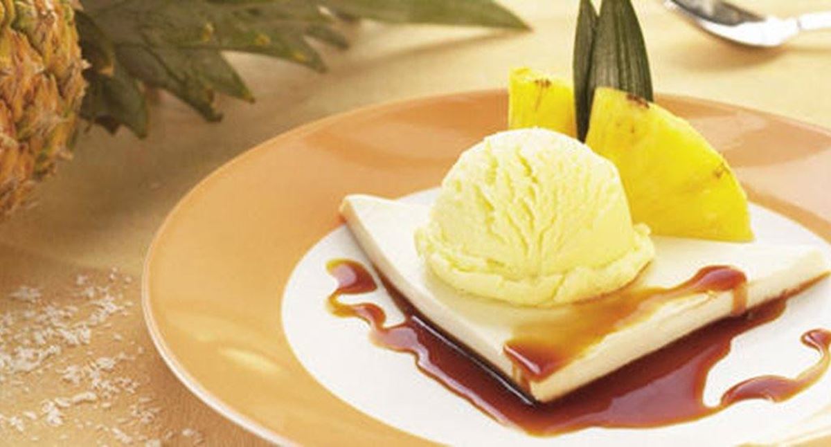 Sorvete de Ananás sobre Gelatina de Coco e Caramelo de Rum