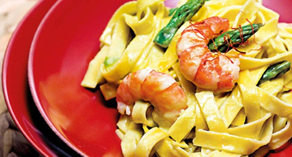 - Aqueça a Vaqueiro líquida, junte as gambas e salteie sobre lume forte. Regue com o brandy, puxe fogo e deixe arder agitando a frigideira. Junte o creme de espargos às gambas, adicione a massa bem escorrida, envolva-a bem no molho e coloque no recipiente de serviço.
