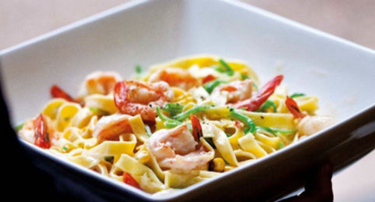 - Escorra a massa e o feijão verde, junte-os ao camarão, adicione o milho escorrido. Regue com um pouco de Vaqueiro Líquida e misture bem.