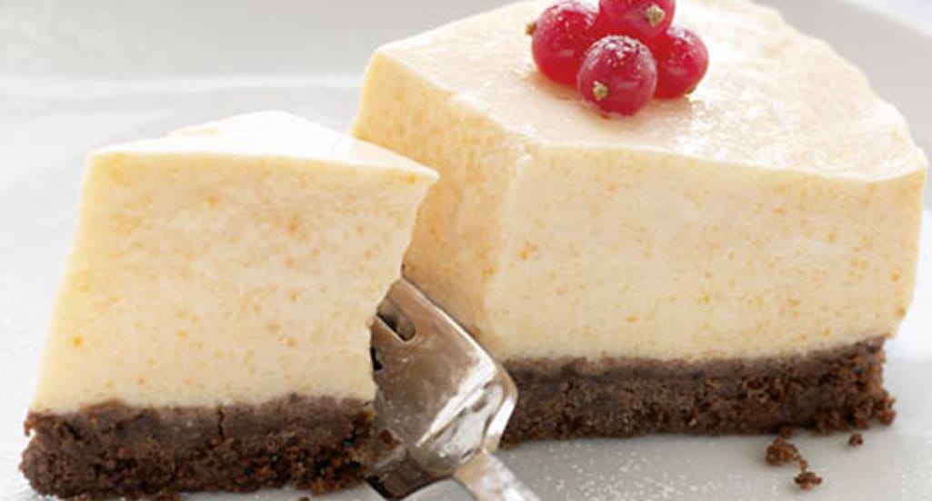 - Escorra as folhas de gelatina e derreta-as no microondas durante 20 segundos na potência máxima. Adicione o licor de laranja e junte tudo ao puré de diospiros. Adicione o iogurte. Misture bem e deite sobre a base de bolacha. Leve ao frigorífico e deixe solidificar.