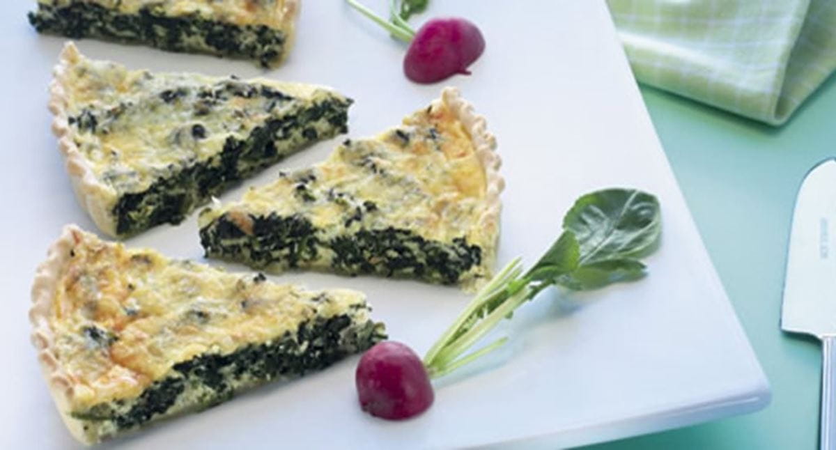 - Bata os ovos com um garfo, misture-os com as natas e tempere com sal e pimenta. Deite sobre os espinafres, polvilhe com o queijo ralado e leve ao forno durante cerca de 30 minutos ou até o recheio estar firme.