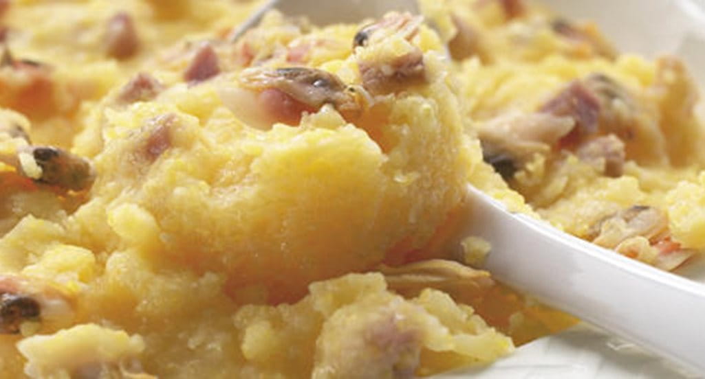 - Leve ao lume um tacho com um pouco do vinho branco. Quando o vinho começar a ferver junte as conquilhas, tape e deixe-as abrir, agitando o tacho. Retire do lume, tire as conquilhas das conchas e reserve os moluscos deitando fora as conchas. Coe o caldo que largaram e junte-o à farinha que está de molho. Pique o bacon em pedaços pequenos e leve ao lume com a Vaqueiro com Azeite. Logo que começar a alourar, refresque com o restante vinho branco, junte as conquilhas e a farinha. Tempere com sal e pimenta e deixe cozer, mexendo sempre, durante cerca de 30 minutos.